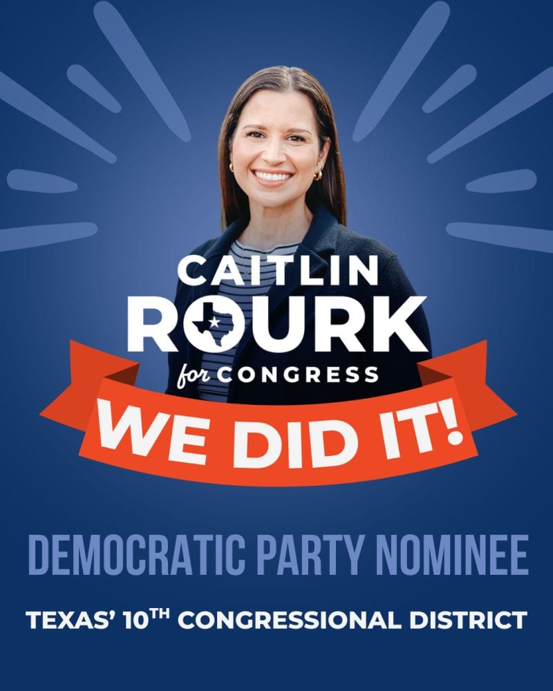 Huge congrats to Caitlin Rourk (who we’ve highlighted before) for winning the Democratic primary in her district.